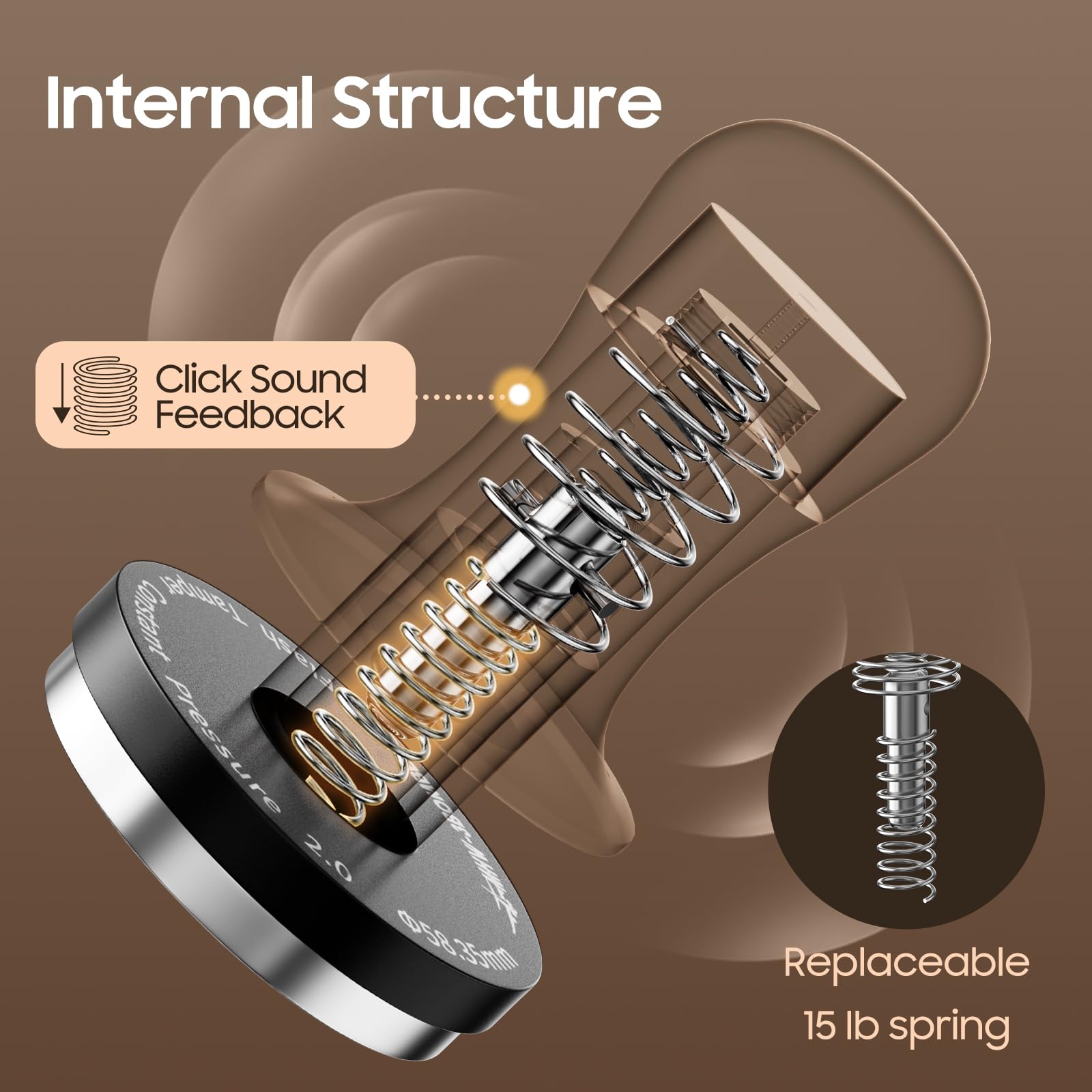 • 【SPECIAL SOUND FEEDBACK】 A clear "click" sound is heard when you reach 30lbs of pressure, eliminating the guesswork associated with other calibrated tampers about when to stop tamping